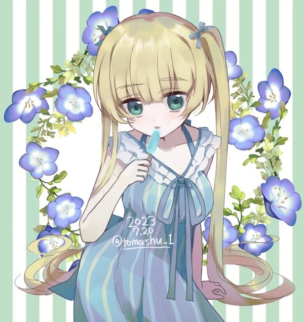フリルの服の少女自体は自創作キャラに存在したけど、髪色が変化球だったので、定番の金髪ロングロリータ少女を作ってみた