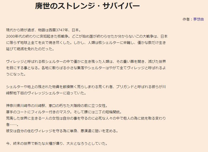 死をもたらす黒い雨の降る国でなんとか生きようとしている連中の小説。ごくたま~~~~に絵も描く。戦う少年少女美女がボロボロになっていくのが好きです