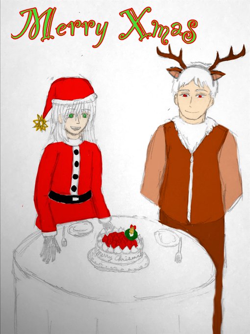 〈1枚目〉メリークリスマスな死柄木兄弟(線画と雑な色塗り)