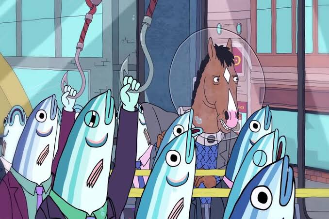 ボージャック・ホースマン、これだけ現代社会を背景にした人間ドラマや風刺をやりつつ、ズートピアやスターウォーズを思わせる異種共存社会の独自文化や動物ギャグを並行してかましてくるのでたまに脳が混乱してしまう。キャラは単に擬動物化した人間でなく、馬は馬だし魚は魚として存在している…