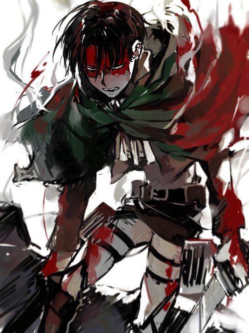 #化け物兵長 巨人の血のせいで全身真っ赤になった姿はまるで肉塊の様だ。それは生皮を剥がされて心をむき出しにされた姿。どんな高潔に見える人物でも一皮むけば平等な肉塊だということを進撃世界は教えてくれる。