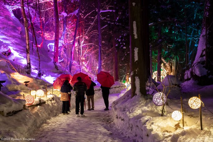 2/20まで十和田湖・休屋で開催されている「カミのすむ山 十和田湖 FeStA LuCe 2021-2022」の『第2章 光の冬物語』に行ってきましたがちょうど雪が降っていて神秘さとフォトジェニックさマシマシでございました⚡️⛩️✨