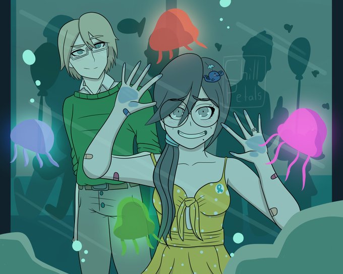 (Late) september's K0-fi reward for @polafuka , merman!Togami and Touko from her story Elusive (go read it)❤️Hope you'll like it!