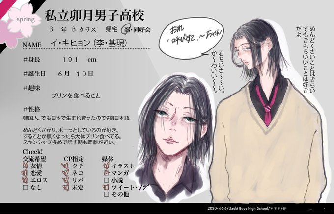 卯月男子校(@UzukiTL)になんだかんだの6人目お邪魔します。(今年卒業した学年と同学年の3年生です)有難いことに事前で将来的な恋愛関係頂いております。まったり交流になるとは思いますが、どうぞよろしくお願い致します。 #卯月高_CS #卯月高_Cクラス #卯月高_在学生