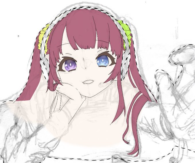 休憩がてら友達依頼の絵を進行中! シュシュの色何色がいいと思いますか? 緑か黄色可愛いと思うんだけど、他にも候補あればください!
