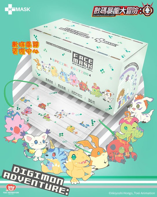 H-PLUS MASK HONG KONG宣布4月26日推出 《數碼暴龍:》口罩系列,包括: