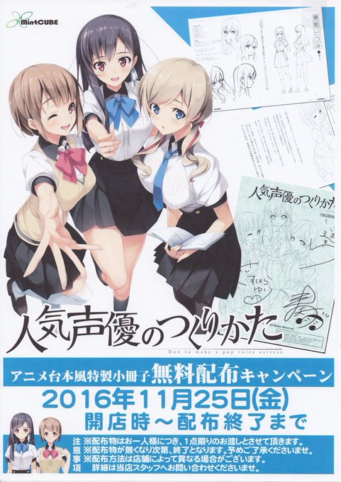 【配布物情報】11/25(金)より、MintCUBE最新作「人気声優のつくりかた」について、豪華装丁『アニメ台本風特製小冊子』を無料配布いたします!配布条件は特にございませんが、お一人様お一つ限りでお願いします。
