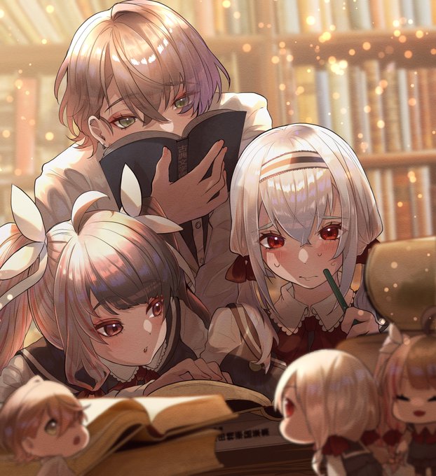 #はかせレポート #れなの鳥っくあーと #加画美 君ダメ時空 図書館でお勉強するSMC組の幻覚