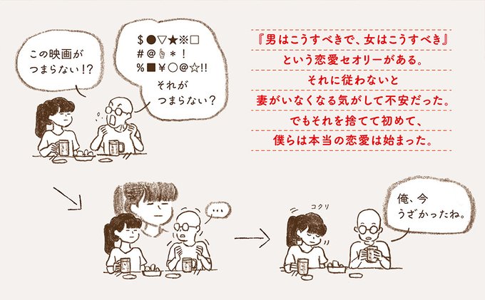 『男はこうすべきで、女はこうすべき』という恋愛セオリーがある。それに従わないと妻がいなくなる気がして不安だった。でもそれを捨てて初めて、僕らの本当の恋愛は始まった。