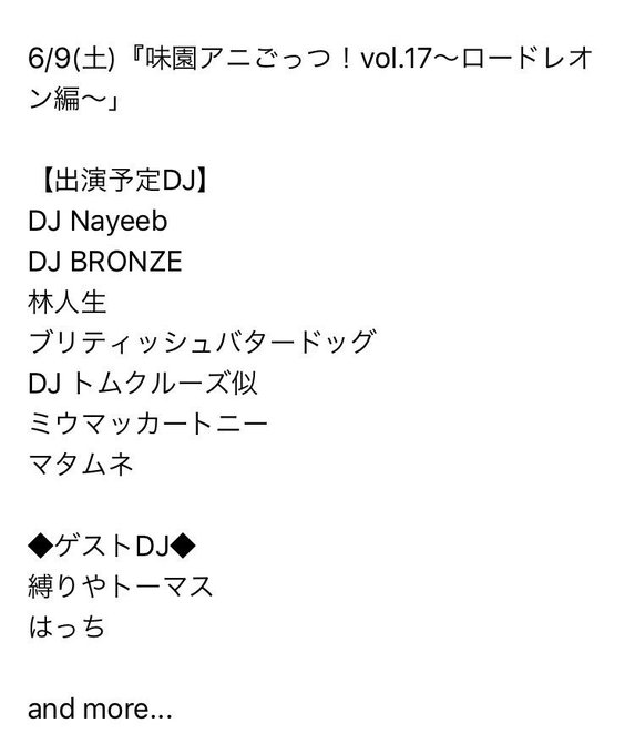 6月9日(土)『味園アニごっつ!vol.17〜ロードレオン編〜』