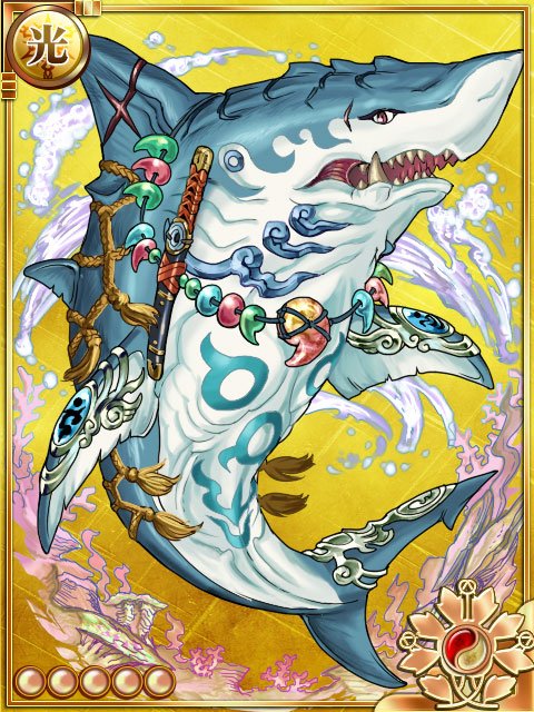 呼水の和邇(よびみずのわに)は海神に仕える鮫です。2013年8月開催の『水底の天柱~官位決定戦~』では、共工に操られて暴走をしてしまいました。その時に術を解いて正気に戻してくれた陰陽師さんには深く感謝しているらしく、お礼する機会を窺っているようですよ。