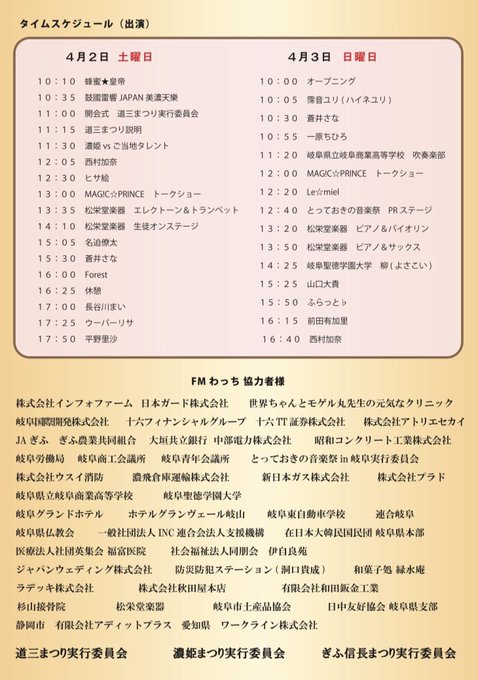 🌸🌸 #道三まつり 🌸🌸 4月2日(土) 10:00~ JR岐阜駅前 信長ゆめ広場 ステージの司会進行を務めます🙏✨ 10:10 蜂蜜★皇帝 11:00 岐阜市長と道三まつりの紹介 11:30 濃姫トークショー 三代目&四代目濃姫が登場やお💕 当日の様子はFMわっちラジオで公開生放送されます📣 岐阜を楽しんでゆっこー😘❤️