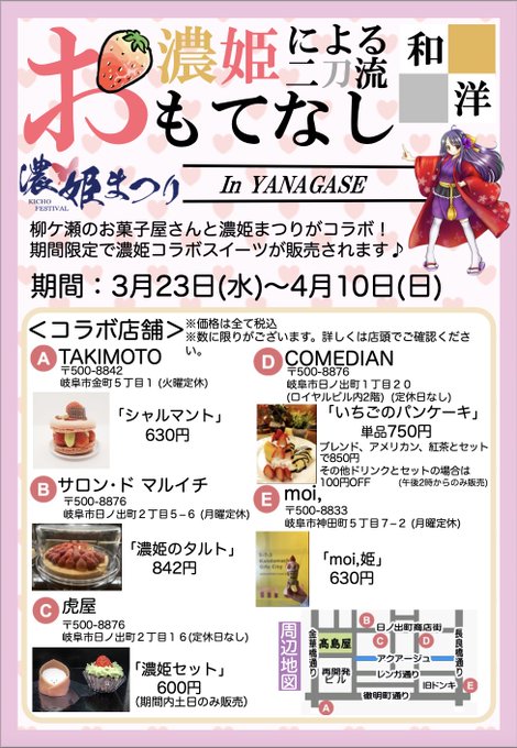 おはようございます🌞 本日は #道三まつり 開催✨ 三代目&四代目濃姫や #濃姫まつり に出演された蜂蜜★皇帝さん登場😁 ぜひ遊びに来てくださいね🎶 濃姫コラボスイーツも販売中なので 柳ケ瀬まで足を運んでくださいね💕
