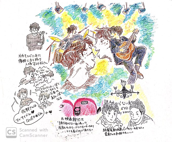 1/11 堂島孝平ゲスト小松シゲル@仙台「誰も知らない劇場」のライブ絵を。曲名ネタバレなしですのでご安心を。ゲストとのMCと歌ってた2人の雰囲気を描きました!本当に堂島さん✖️小松さんてすごい相乗効果 でめちゃくちゃ楽しい空間になるー!