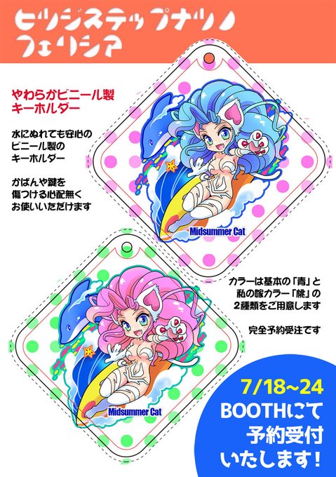 夏の元気なご挨拶♪フェリシアさんやわらかキーホルダーとステッカー
