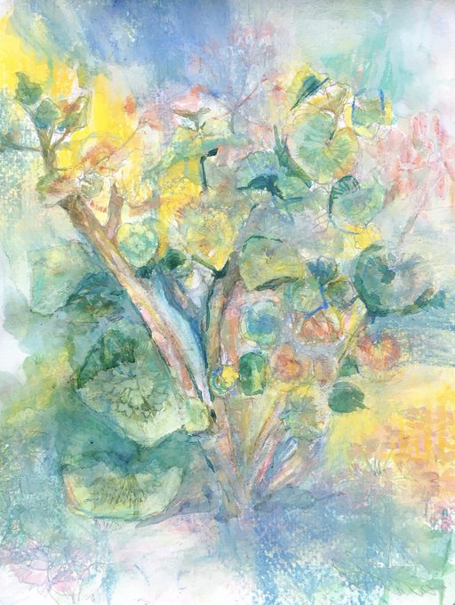 ゼラニウム 水彩からパステルからアクリル #夜な夜な制作 #制作途中 #水彩 #パステル #アクリル