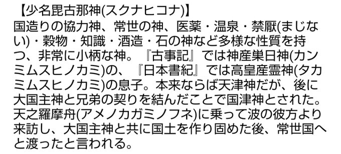 【#国津神 #少名毘古那神(#スクナヒコナ)】