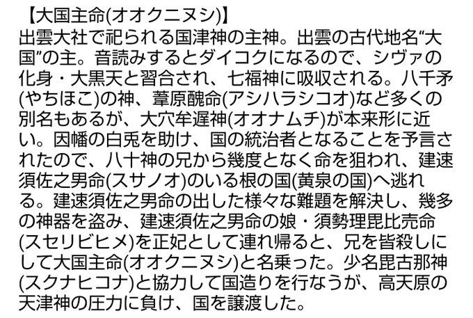 【#鬼神 #大国主命(#オオクニヌシ)】