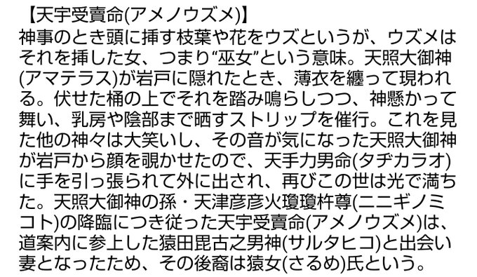 【#天津神 #天宇受賣命(#アメノウズメ)】