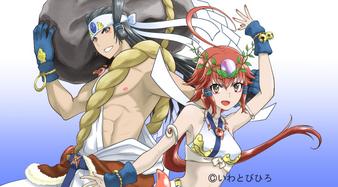 地元、三重県多気郡多気町のキャラクター「タヂヲとウズメ」こと天手力男命と天宇受売命をデザインさせて頂きました。まだ専用ページが無いのでリンクはこちらhttp://t.co/QPlh8xsaOK