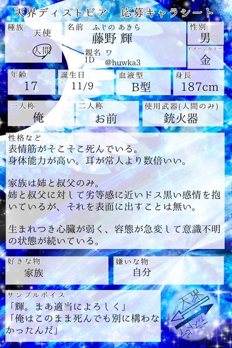 #天界ディストピア_cs ワ様宅(@huwka3) 人間:藤野 輝