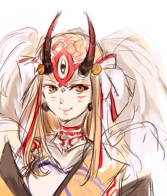茨木童子描いてみましたーおでこの模様難しいな #女性キャラ版fateワンドロ #女性キャラ版fateワンドロ_20170610
