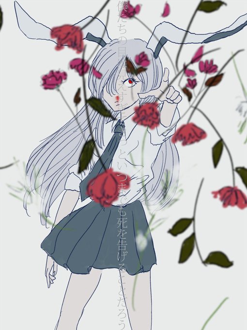3万年くらい前にリクエスト頂いていた気がするので描きました!一輪(春の歌/スピッツ)、ドレミー(skin/B'z)、妖夢(桜の森/星野源)、うどんげ(午前三時のオプ/フリッパーズ・ギター)#好きな曲で絵を描きますみたいなやつ