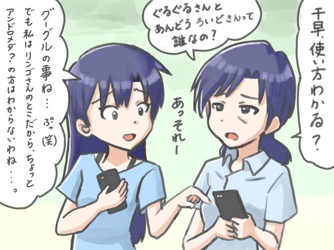 いまだに声に出しながらメールを打ってしまう千早と、なかなかピントが合わせづらくなっている千種さん