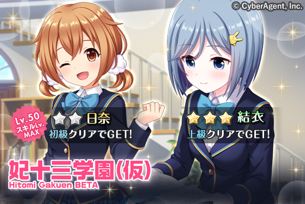 ☆3の結衣ちゃんと、☆2の日奈ちゃんが登場しているコラボイベント「妃十三学園(仮)」は≪明日(6/12(金))の14:59まで≫ですよ!(◍´꒳` )σ