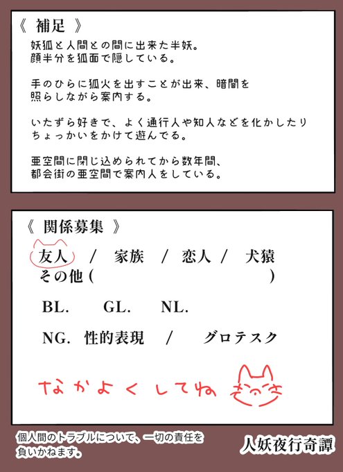 人妖夜行奇譚【@Jinyou_kitan 】に5人目で参加です!