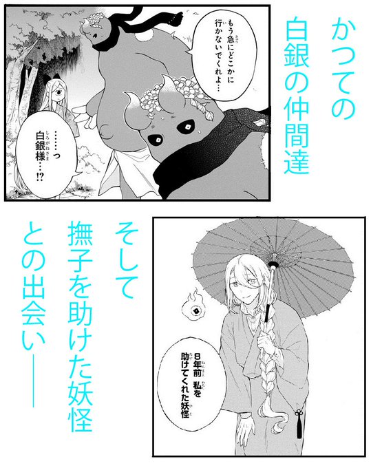 白銀のかつての仲間達、そして撫子を過去に助けた妖怪との出会いがもたらすものとは――。撫子と白銀、人間と妖怪の二人の選ぶ未来をぜひ見届けてください!https://t.co/ZJtxO11EsZ