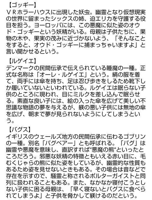 妖虫ゴッギー、夜魔ルゲイエ、妖獣バグス。