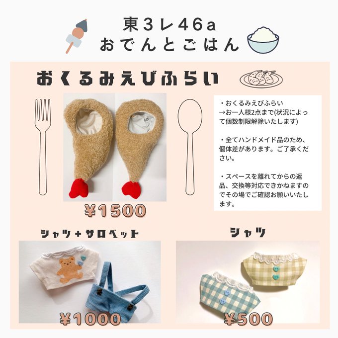 いろんな形の🍤着ぐるみとぬい服があります(12cmぬい用)