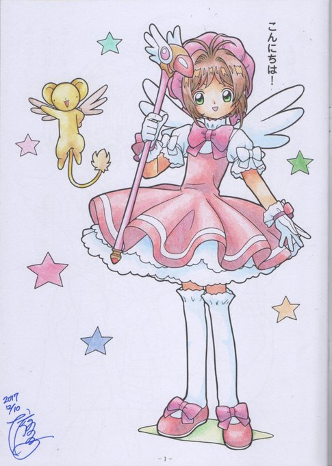 子供用塗り絵を本気出して塗ってみた【1】 こんにちは!が子供感を醸し出してますね… #色鉛筆 #カードキャプターさくら