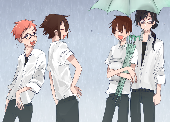 笹本「やっぱり!傘持ってないだろうと思って」 漆地「おっ!流石颯太ちゃんは気が効くな~」 黒軍は支給のビニール傘とか使っていても可愛い(ただし描けるとは言ってない) #学戦雨天決行