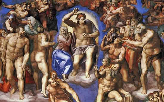 俵屋宗達の風神雷神とヘレニズムは、似ていると思います。マリさんは『最後の審判』に、共通点を見い出していらっしゃいます。ですよね、ですよね。ワカります~!筋骨粒々で、これ見よがしなポーズ。人物はお互いに目を合わせてないのに、こちらは、ひとりひとり目で追ってしまう。あー、そっくり。 https://t.co/pY2ehlyQDO