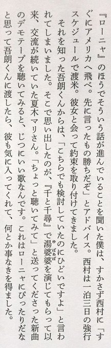 『#思い出のマーニー』で主題歌を歌ったプリシラ・アーンは、もともと宮崎吾朗監督が『山賊の娘ローニャ』の主題歌を歌ってもらおうとしてたんだけど、鈴木敏夫Pが「早いもの勝ちだ」とスタッフを渡米させて先に契約してしまい、「ひどいですよ!」と吾朗監督がブチ切れたらしい(たしかにひどいw)