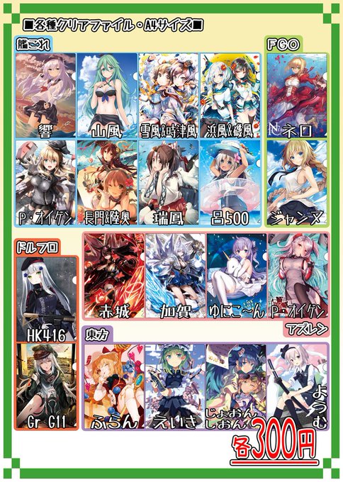 アズレンのクリアファイルはここら辺を持っていく予定。こちろも数はやっぱりそんなに多くないよ。