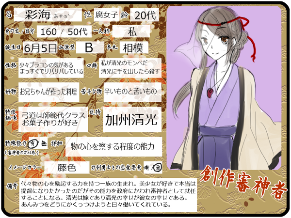 #創作審神者 #創作審神者キャラシート #創作審神者テンプレ