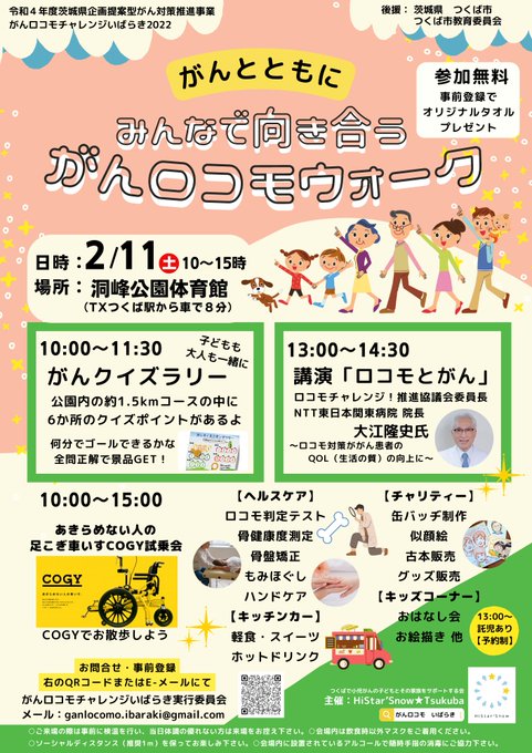 2月11日㈯洞峰公園にて「がんロコモウォーク」を開催します。
