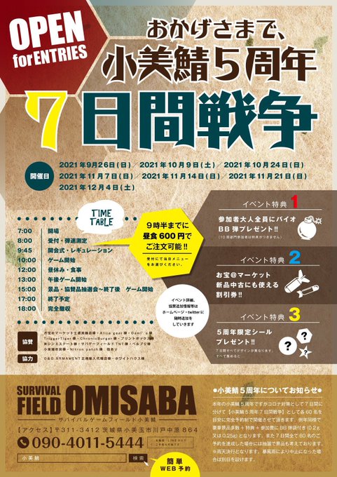 どちらも上記サバゲーフィールド様にて参加予約を受け付け中です!