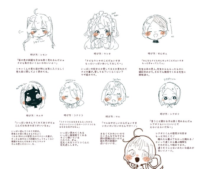 @yagiao_00 #山羊青_おえかき とりあえずの呼び方と印象まとめしました...妄想が9割以上なのでお話ししてく中で呼び方変えていきたいので...たくさんおしゃべりしましょ...ある程度またまとまったら再度まとめします..!!