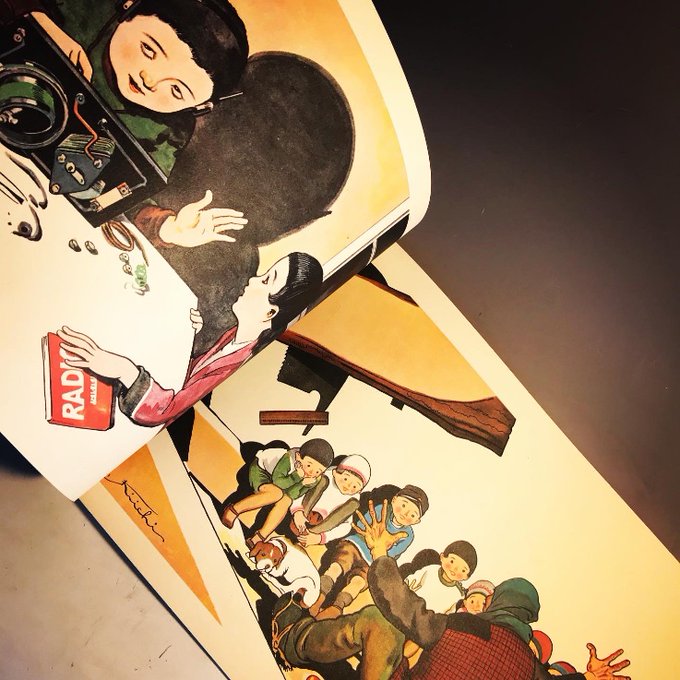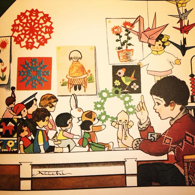 ◆聞き耳頭巾をかぶってカラスの会話に聞き耳を立てます◆絵雑誌『 #コドモノクニ 』での活躍で知られる #岡本帰一 の絵です。国際子ども図書館の『 #絵本ギャラリー 』で、『コドモノクニ』の掲載作品を楽しめます。館内の児童書ギャラリー(https://t.co/YWjUxGzsNW)で見られます。 #耳の日