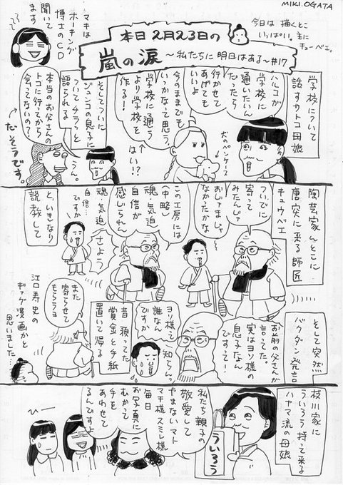 今日は何か新展開?! と楽しみにしてたのですが、それほど展開しませんでした。『嵐の涙』つうより『小雨の鼻水』くらい。(尾形) #嵐の涙 #本日の嵐の涙
