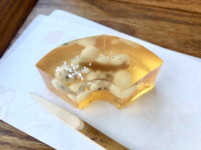 この美術館に行く楽しみの20%くらいは創作和菓子、川に泳ぐ鮎は珍しく錦玉羹✨美しい&美味しい😋