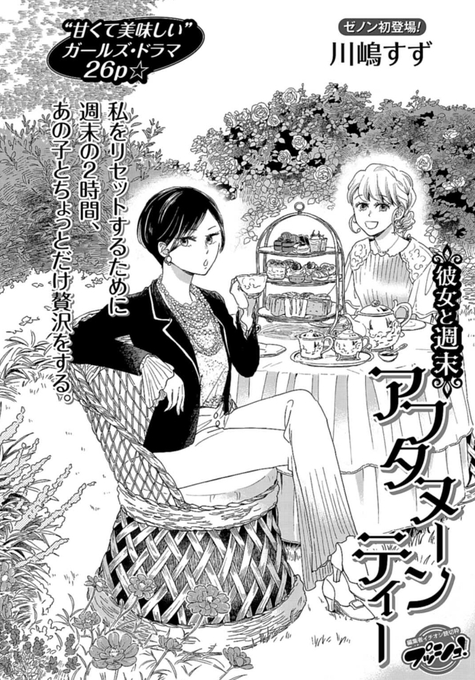川嶋すず先生の読み切り百合漫画「彼女と週末アフタヌーンティー」がゼノン編集部にて公開されましたー!