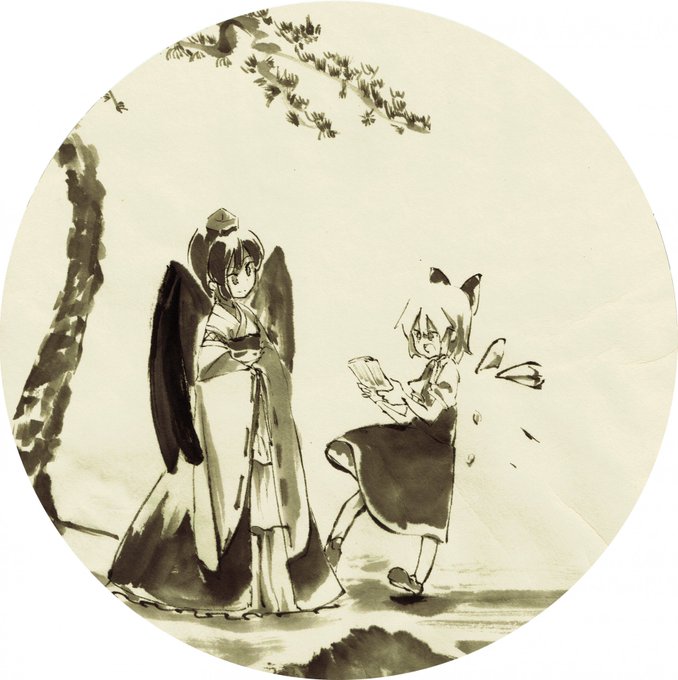 10.入鄽垂手(にってんすいしゅ) - まちへ... 悟りを得た修行者(童子から布袋和尚の姿になっている)が街へ出て、別の童子と遊ぶ姿を描き、人を導くことを表す。