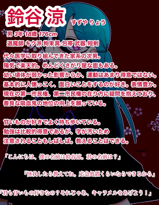 こちら【@tcm_TL】の企画に7人目失礼します🌱 コミュ力チート気味な吸血鬼です! よろしくお願いします! ※不備がありましたので再投稿失礼します🙏