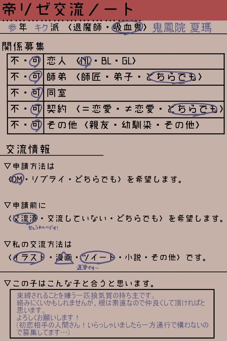 #帝リゼ_CS #帝リゼ_キク派 #帝リゼ_退魔師 #帝リゼ_交流チェックシート