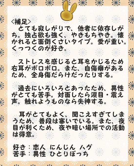 こちらの企画【@tcm_TL】に6人目失礼します。情緒ジェットコースターなメンヘラ兎です!事前に恋人・契約関係を頂いておりますが、その他関係真っ白なので仲良くしていただけたら嬉しいです!よろしくお願いします!#帝リゼ_CS #帝リゼ_吸血鬼 #帝リゼ_ユリ派 #帝リゼ_交流チェックシート